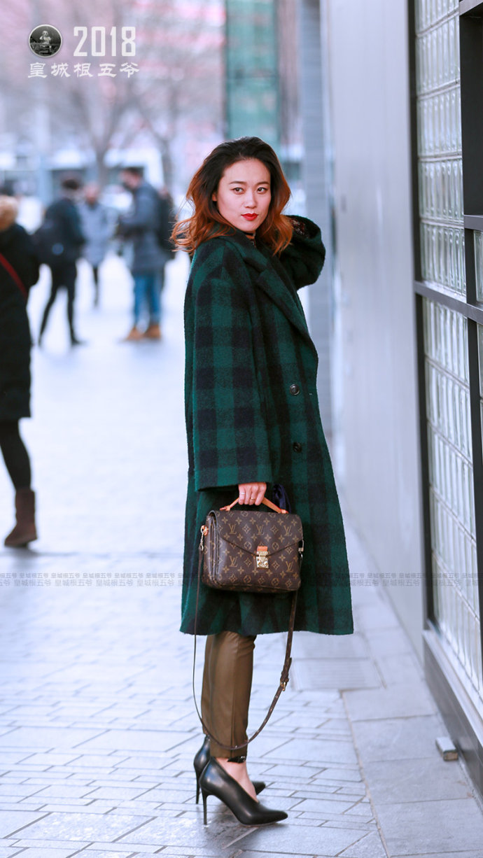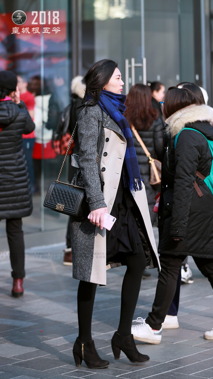 美女的穿搭给人沉稳又温柔的感觉,很多女孩子都喜欢格纹大衣,走在三里屯街头随处都能看到有人穿着格纹大衣,复古时髦的格纹, 永恒的经典。