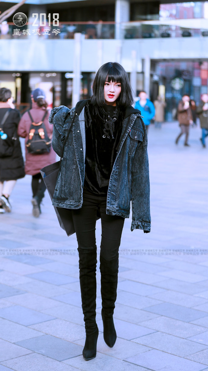 放眼望去三里屯的街上,一双简单时髦的黑色短靴,可以说是所有时髦美女穿搭必备的单品。美女大衣牛仔裤与短靴做搭配,穿出了简单俐落的时尚感。