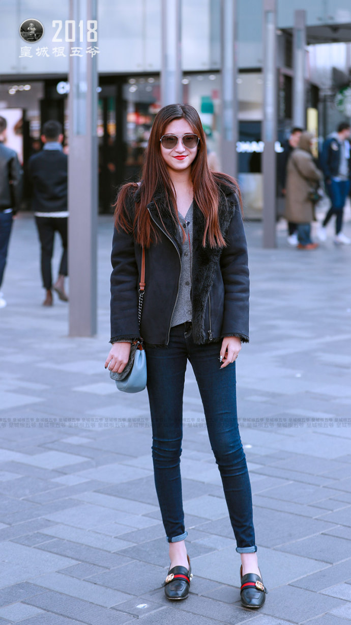 这个美女我只有一个词来形容,就是潇洒,不论是短靴,还是黑色仔裤,都有她自己独特的味道,真是一道靓丽的风景线。