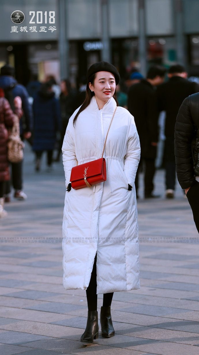 白色虽然不经脏,但是白色羽绒服上身后有种特别纯美的感觉,白色明亮干净、畅快、朴素、雅致,如雪如云,白色羽绒服在这个寒冷的冬季给人眼前一亮的干净甜美印象。