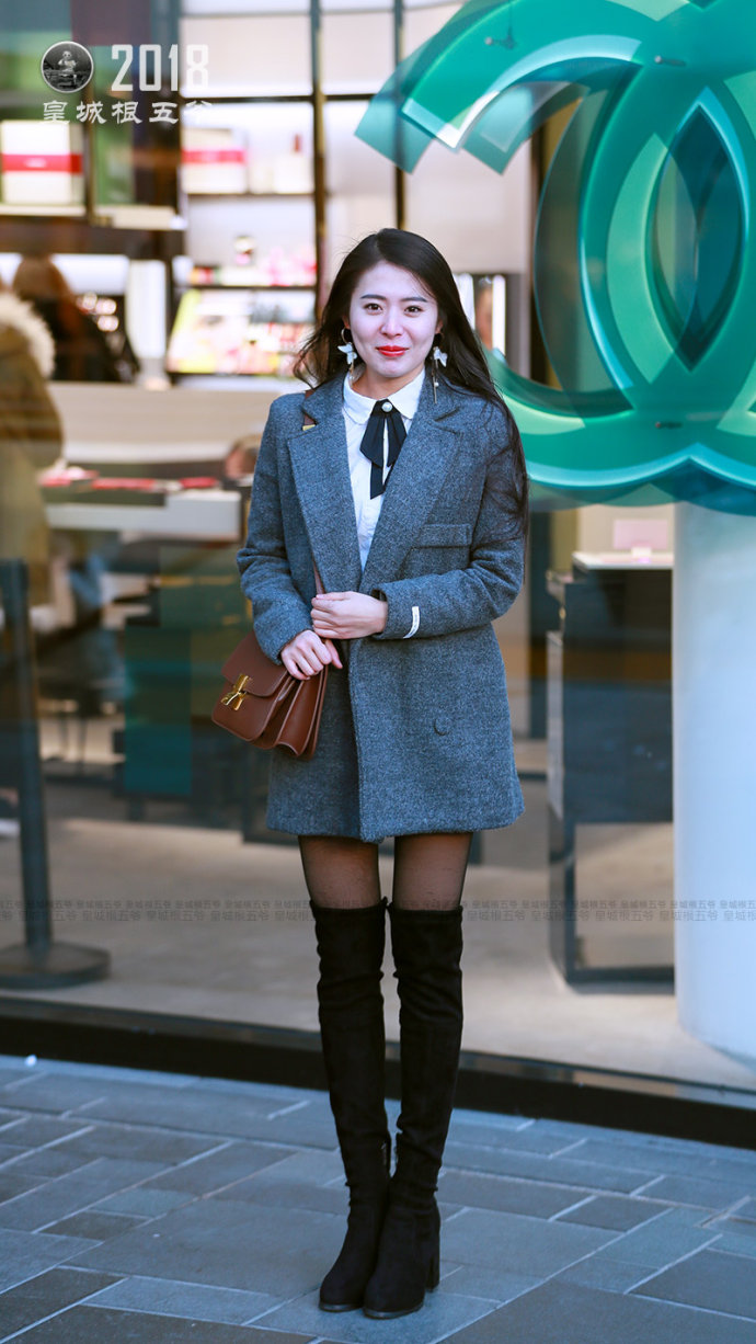 美女穿西装外套也很有女人味,西装外套搭配黑色过膝长靴与黑丝,非常有气质,露出的黑丝大腿部分更是性感迷人,冬季穿过膝靴真的好漂亮。