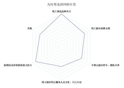 传统线下消费行为为何会迅速被线上消费冲击?原因很简单,线上商品品种齐全、促销活动多价格优惠力度大等等……在为何选择网购年货这一调查项目中,消费者纷纷给出了自己的答案。