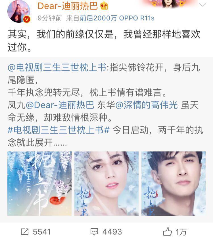 刚刚迪丽热巴微博发文,表白东华帝君:我曾经那样的喜欢过你,原来《三生三世枕上书》措不及防的官宣了,粉丝激动坏了。