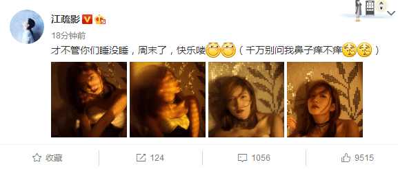 江疏影晒出了四张美照,一个比一个妩媚,勾人心魂。