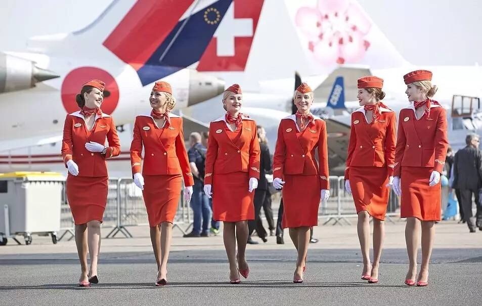 常听人家说俄国出美女,迷人蓝色的眼睛和金色头髮配上高挑身材,姣好的身材配上专业的制服,凸显俄罗斯美女们的雪白肌肤。俄罗斯航空是俄罗斯的国家航空公司,也是当地最大的航空公司,空姐们橘红色套装是出自俄罗斯设计师Julia Bunakova和Evgeny Khokhlov之手,曾多次被评点为时尚空姐制服之一,橘红色的主色配上白色手套,复古剪裁的斜帽让人印象深刻,帽子也是很有造型的设计呢!