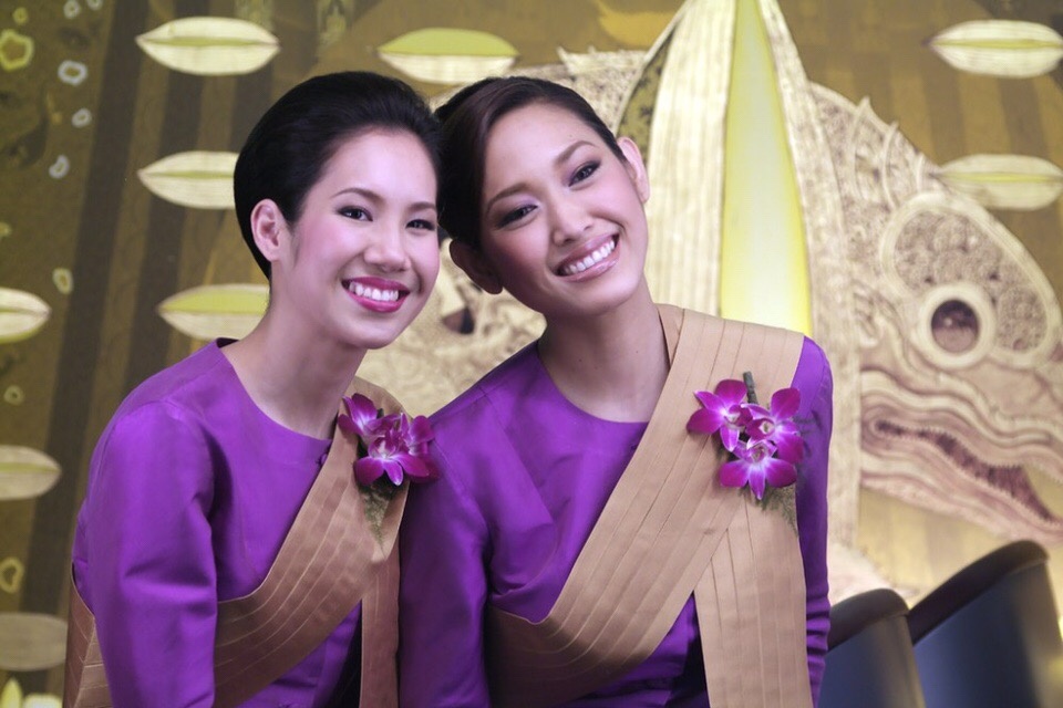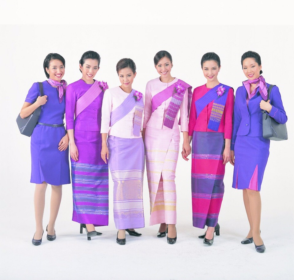 到过泰国的朋友都知道,泰国空姐的经典问候姿势就是「萨瓦迪卡」,妆容和服饰剪裁上当然也少不了泰国独有的妖娆魅力,甚至也将传统服装元素融合,在布料的选材上也有特别著墨,是一套很有韵味的服装呢!
