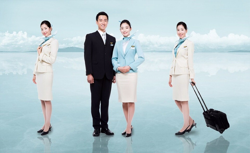 大韩航空是韩国最大的航空公司,从2005年就穿著这套湖水绿的制服,是由义大利设计师Gianfranco Ferré操刀,尊重服饰质感剪裁并保有韩国特色,将现代的剪裁服装搭配系扣丝巾,看起来严谨但又不会太过单调,给人感觉气质又高雅。