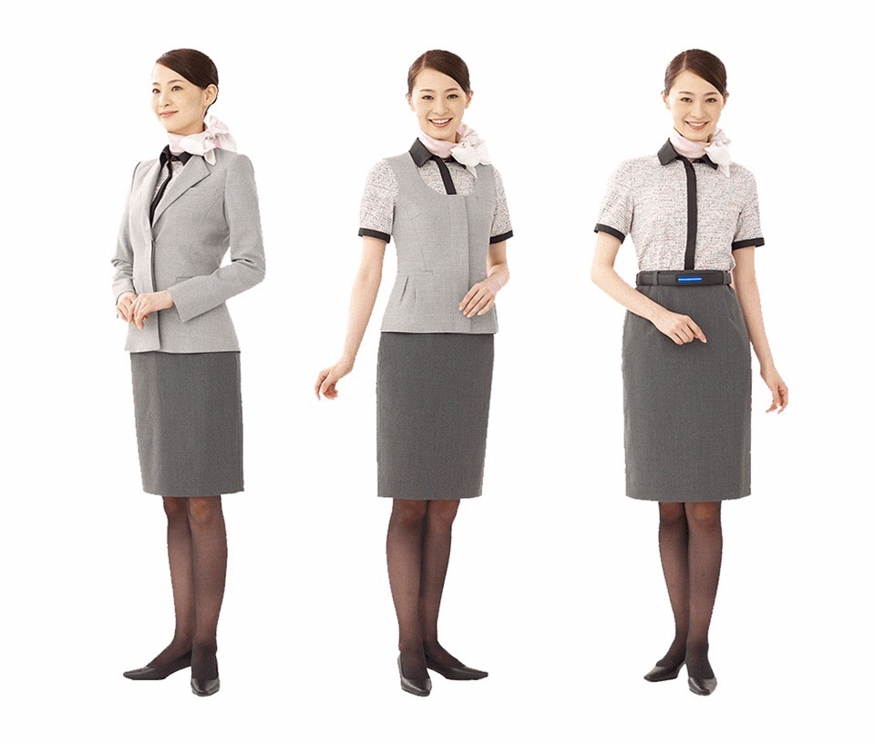 ANA是日本的航空公司,2014年推出新制服,由纽约尼泊尔裔设计师Prabal Gurung设计,希望突出ANA着重细节的特点。制服主要以浅灰色外套和炭灰色半截裙组成,加上代表ANA的蓝色,而领巾上印有日式花卉图案,感觉优雅大方。