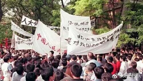1999年5月8日,北京10余所高校的数千名学生前往美国大使馆,强烈抗议以美国为首的北约轰炸我国驻南使馆的野蛮行径。 (新华社记者 谢家华摄)