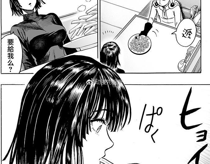 饿狼,路上遇到被他所救的小孩,小孩坦诚自己为没勇气和能力为饿狼说话,对饿狼表示他才是真正的英雄之时,饿狼虽然嘴上说不要,身体和思维还是很诚实的,为自己的老师们没死而松口气,不过还是口硬心软。琦玉老师追来,但没有动手,很明显的是琦玉老师想跟饿狼同流合污,逃过霸王餐的罪责,饿狼不怕死地想跟琦玉一战,嗯,结果又是睡上一觉,轻微的鼻孔流血而已。饿狼三次都没死在琦玉老师的手上,难道不应该获得掌声吗?哈哈。