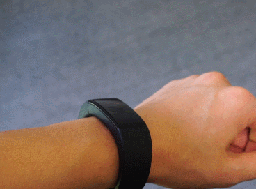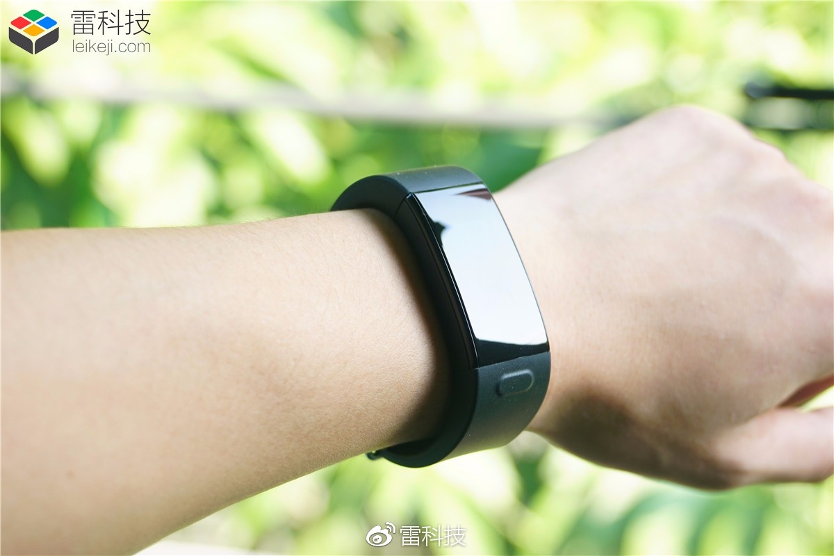 上手佩戴效果这样,感觉还不错,机身线条流畅,厚度适中,看起来比较有运动感。