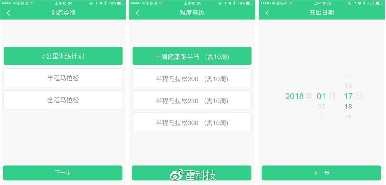 有了“男神”目标还不行,还要一步步去实施,但很多人自制能力不够,往往坚持不到3天就放弃,斐讯W1内置了训练计划制定功能,支持5公里、半马拉松、全马拉松等不同锻炼类别和强度的训练计划制定。