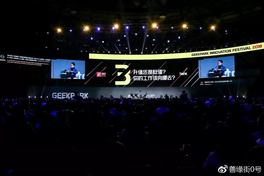 此次极客公园创新大会IF2018,“罗胖”罗振宇与顺为资本周航,还有主持人极客公园创始人&总裁张鹏,一起探讨了科技快速迭代的时代下,你的工作该向哪去?升值还是贬值?