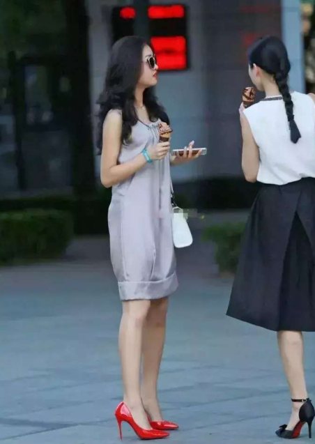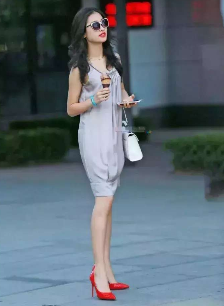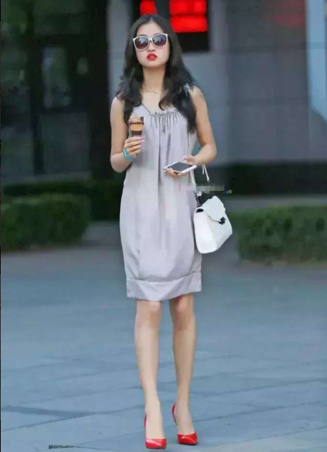 除了这些之外,说一说美女的服装,她的裙子是一件浅灰色的灯笼裙,图案还有款式什么的都算是比较朴素,可是还是给人一种比较可爱的感觉。还有就是露出的小腿,真的是太美了。