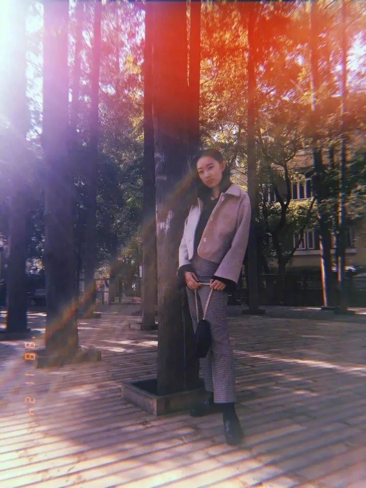 搭配心机:妹妹是服装设计专业,蹭蹭随意一搭,风格大变,容易显老的格纹西装也可以很帅气。酒红色的包包瞬间提亮造型。
