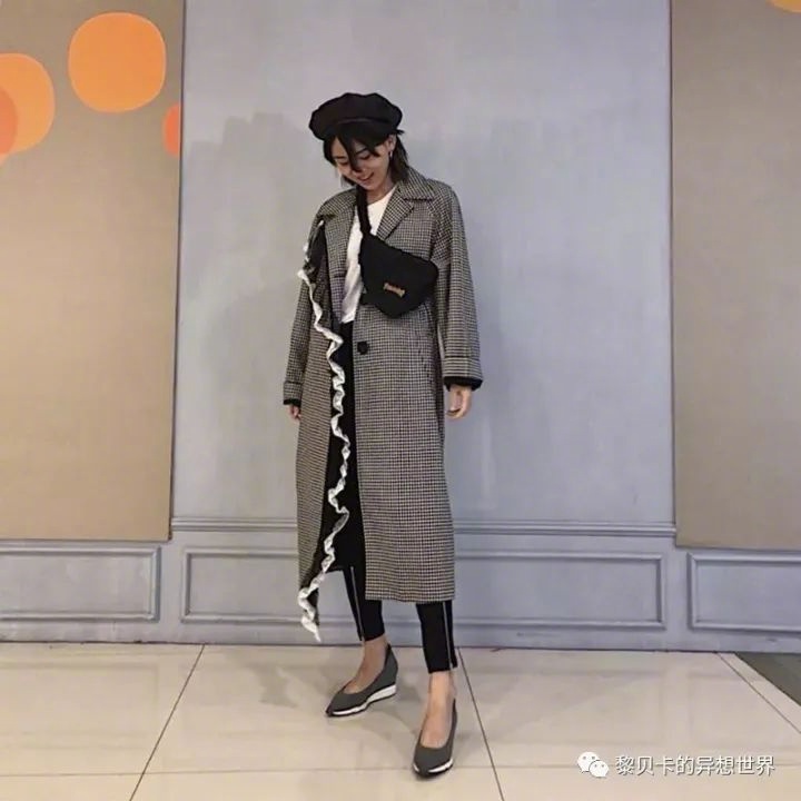 搭配心机:格纹长大衣如果搭配不好,很容易压个子。我的方法是:用腰包提高腰线。