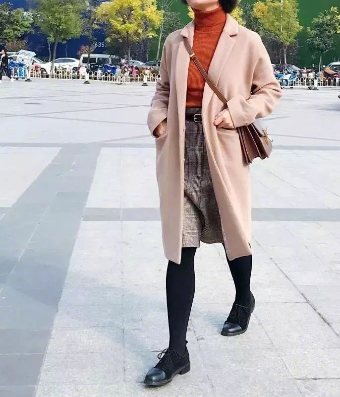 我的穿搭:格纹半身裙+高领羊绒衫+长大衣