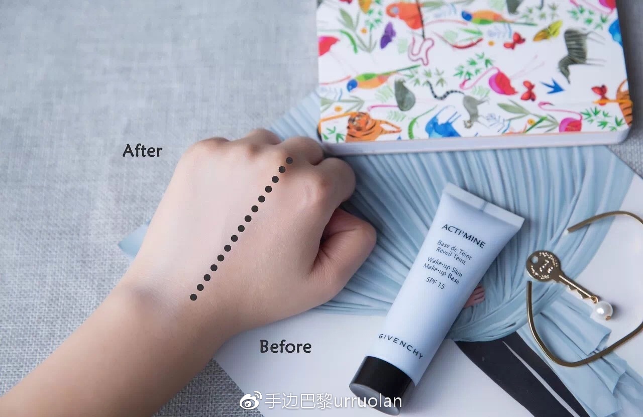 亮白效果见下图,还是非常明显的有木有,而且白得很自然,追求白皙妆感的姑娘可以试试。膏体用手不太好推,我个人更倾向用美妆蛋辅助推开。妆效是哑光效果,配合了能够吸收多余油脂的成分,有控油的功能,搭配后续底妆也会延长持妆时间。但是干皮使用可能会觉得不够滋润。