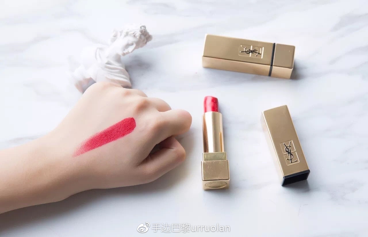 如果说TF的黑管#10是红红粉粉,YSL的方管1号就是完全不偏色的经典正红色。