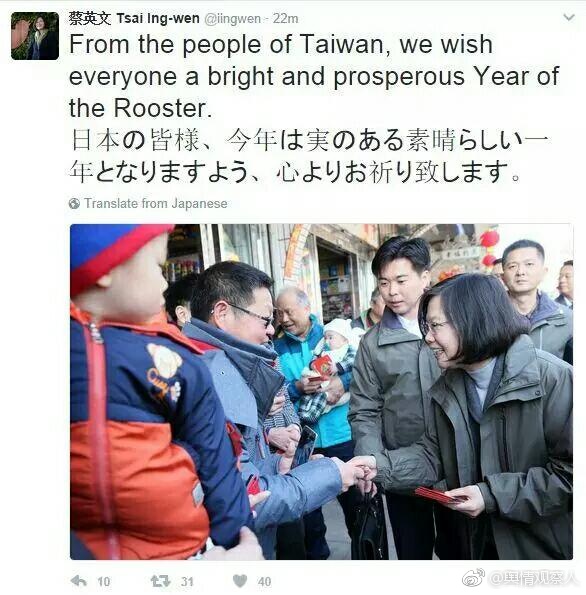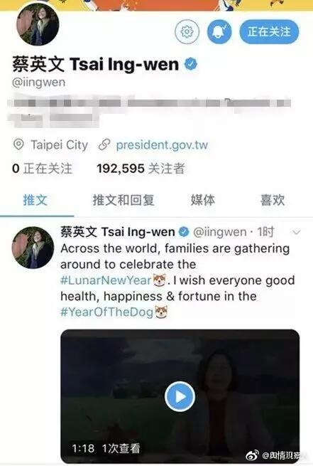 不知道是不是学特朗普(当然是),蔡英文年三十有发推特的习惯。