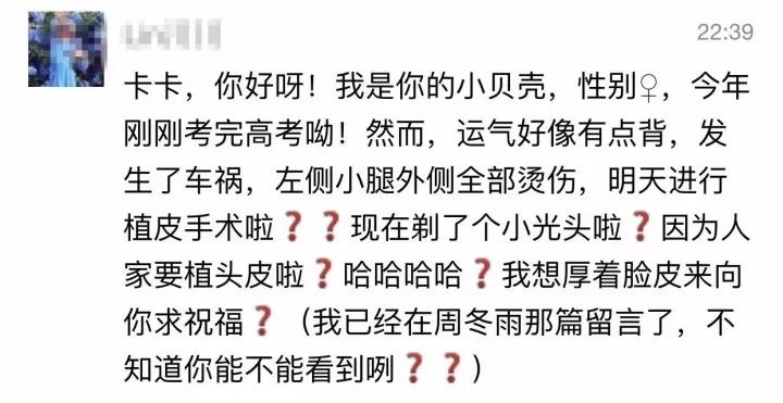 就连我身边的不少朋友,听说我现在还“亲自”写稿,“亲自”选评论回复后台和留言,都很惊讶,更别提你们了。因为每天工作完都一两点了,再加上我的晚睡拖延症,我常常到后半夜才有空看后台,因为现在留言实在太多,做不到每条都回复了,但只要有时间还是会尽量回。所以总有不明所以的读者看到我半夜的回复大吃一惊:卡卡,是你本人吗?还是机器人?