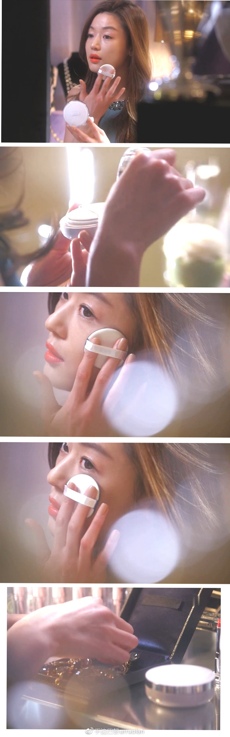 它是一块气垫粉饼!创新水凝冻质地具有56%保湿成分,以Q弹水润出名,揭开白膜发现它上面有一层很有弹性网面,配合纯白色传统胶状粉扑,虽然没有绒面但是触感柔和,拍压取粉时,网面就会开始湿透,然后布满整个果冻粉霜,视觉看起来它QQ弹弹的。取量精准无溢出,上脸无粉感,服贴又自然,整体看起来水水亮亮的,但是遮瑕一般,一贯的米色调包装外形轻巧,适合随身携带补妆用。