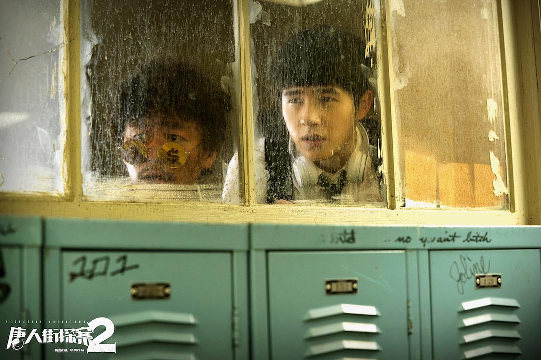 电影主线很清楚明晰,秦风(刘昊然 饰)再次被舅舅唐仁(王宝强 饰)欺骗到纽约参加世界名侦探大赛,并被卷入一场连环杀人案件,被要求在一周的时间内必须找到凶手。在这部影片中,两位男主的反差风格和各自的人设算是立起来了:刘昊然担当颜值和推理重任,王宝强则负责搞笑和拆台,加上这一部肖央带来的喜剧元素——刘昊然的护士装,王宝强的玫瑰舞蹈,肖央的唐山话简直是新年三大欢乐法宝了。而比起《唐人街探案1》,这部影片的人物明显增多了。首先就是得益于导演颇具远见的设定——“世界名侦探大赛”和“侦探排行榜”。妻夫木聪扮演的日本侦探在最开始就显现出了强大的推理能力,和秦风之间的火药味道及其浓烈,并为第三部埋下伏笔;尚语贤饰演的KIKO 是一名电脑黑客,在之后无数次于危难之际解救秦风和唐仁于陷阱。此外,剧中也展现了来自世界各地的各类侦探,年幼而冷静的英国小女孩、一身腱子肉的光头大叔、气氛诡异的双胞胎兄弟、热爱中国功夫的美国大妈和神神叨叨的吉普赛女郎,还有一直未曾露面的侦探排行榜上的首位“Q”,这些角色都或多或少都带着自己强烈的个人特色参与到了主线故事之中,要么帮助推动案情的发展 ,要么增加剧情的看点和元素,每个人都很有立体感且无时不刻中透露出小机灵。