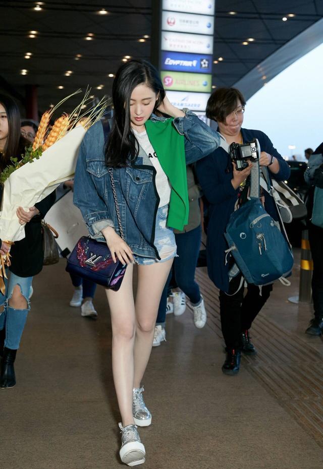 张天爱身穿牛仔单品太漂亮, 就是小腿有点细了