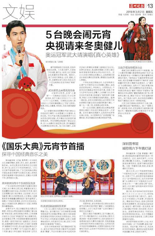 五台晚会闹元宵 奥运冠军武大靖献唱