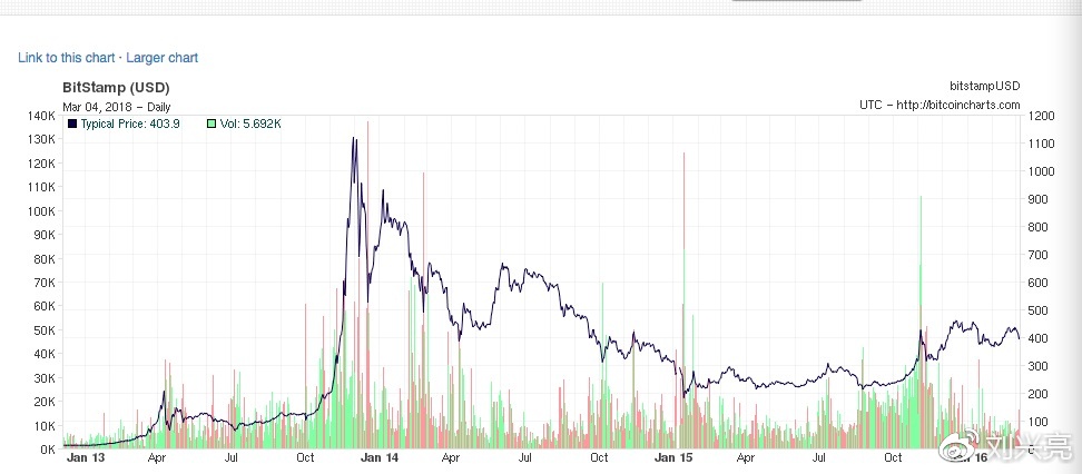 2011到2012年比特币交易量并不大,价格波动虽然不小,但是并没有引起广泛的注意。特别是2011年比特币交易网站Mt. Gox被黑客攻击,当时比特币价格迅速降到0.01美元。当然之后快速恢复了行情,并保持了增长。