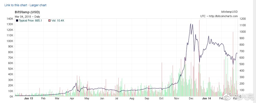 到2013年底,比特币突破1000美元,较年初涨价50倍。