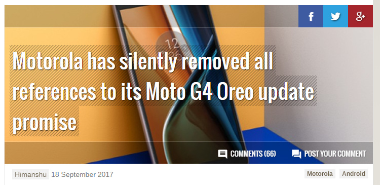 除此之外,摩托罗拉在2017年也因为系统升级闹过不少笑话。Mot G4发布于2016年,算是主力机型之一,联想曾承诺会为Moto G4更新到目前最新的安卓8.0系统,后来却出尔反尔,称只会为其升级到安卓7.0系统。