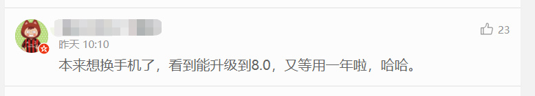 给自己发布的手机提供系统升级看上去无可厚非,粉丝却给予赞赏,一个很重要的原因是荣耀比行业多做了一步。行业惯例一般是不给老机型升级最新系统,毕竟给不同机型适配新系统,需要尝试投入许多开发资源。而从微博评论的反馈来看,荣耀让老机型也兼容EMUI应该是得到了粉丝的认可。