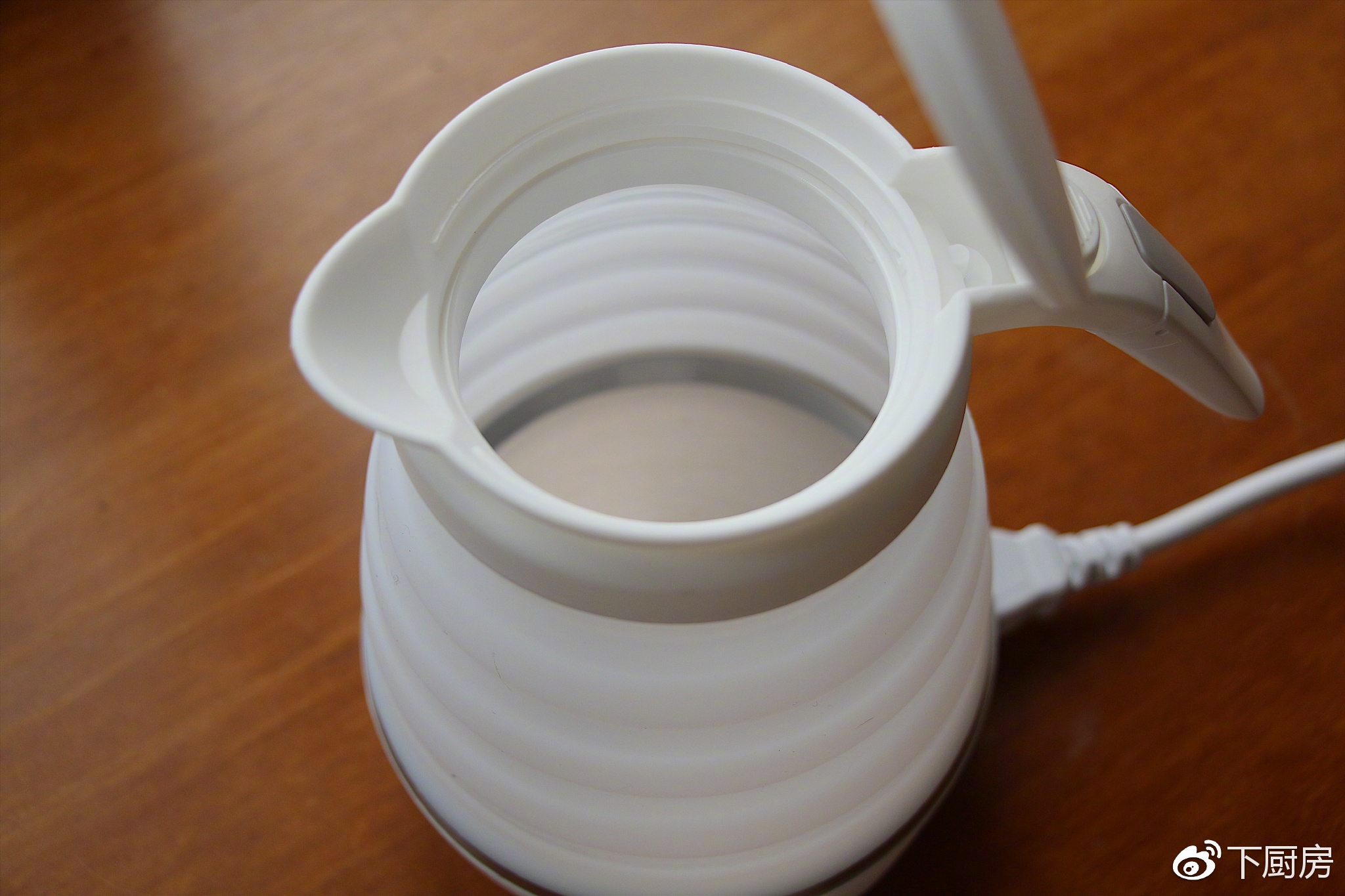 打开包装后没有异味,壶身为食品级硅胶,可以耐受200℃,并且不会变黄和破裂(出去玩,可不希望打开行李箱就是一个又黄又旧的水壶);底部是304不锈钢发热盘,也是食品级,所以用起来非常放心。