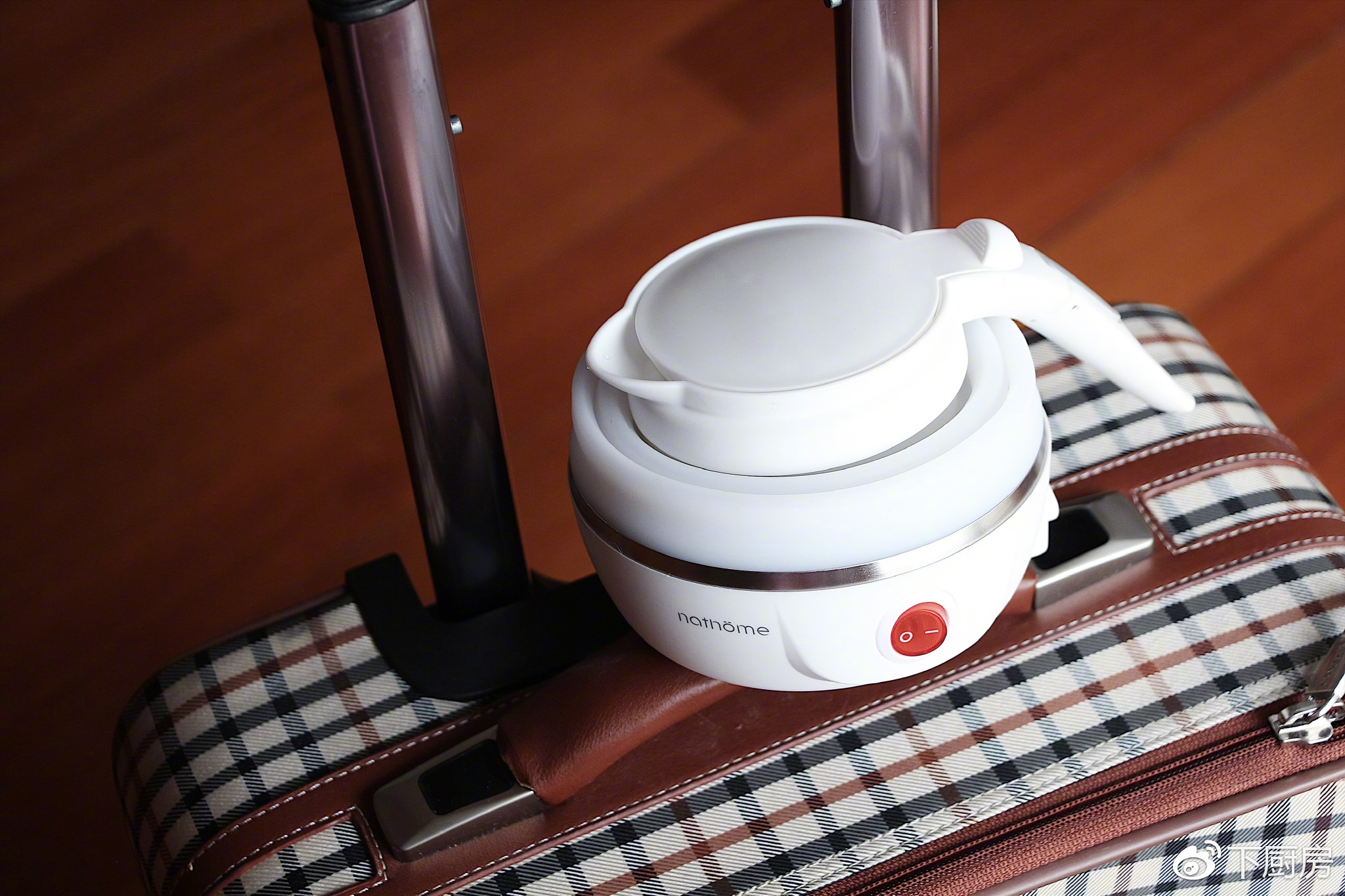 壶身可压缩,把手可收缩,一压一按,只需3秒,就能揣入箱内带走。