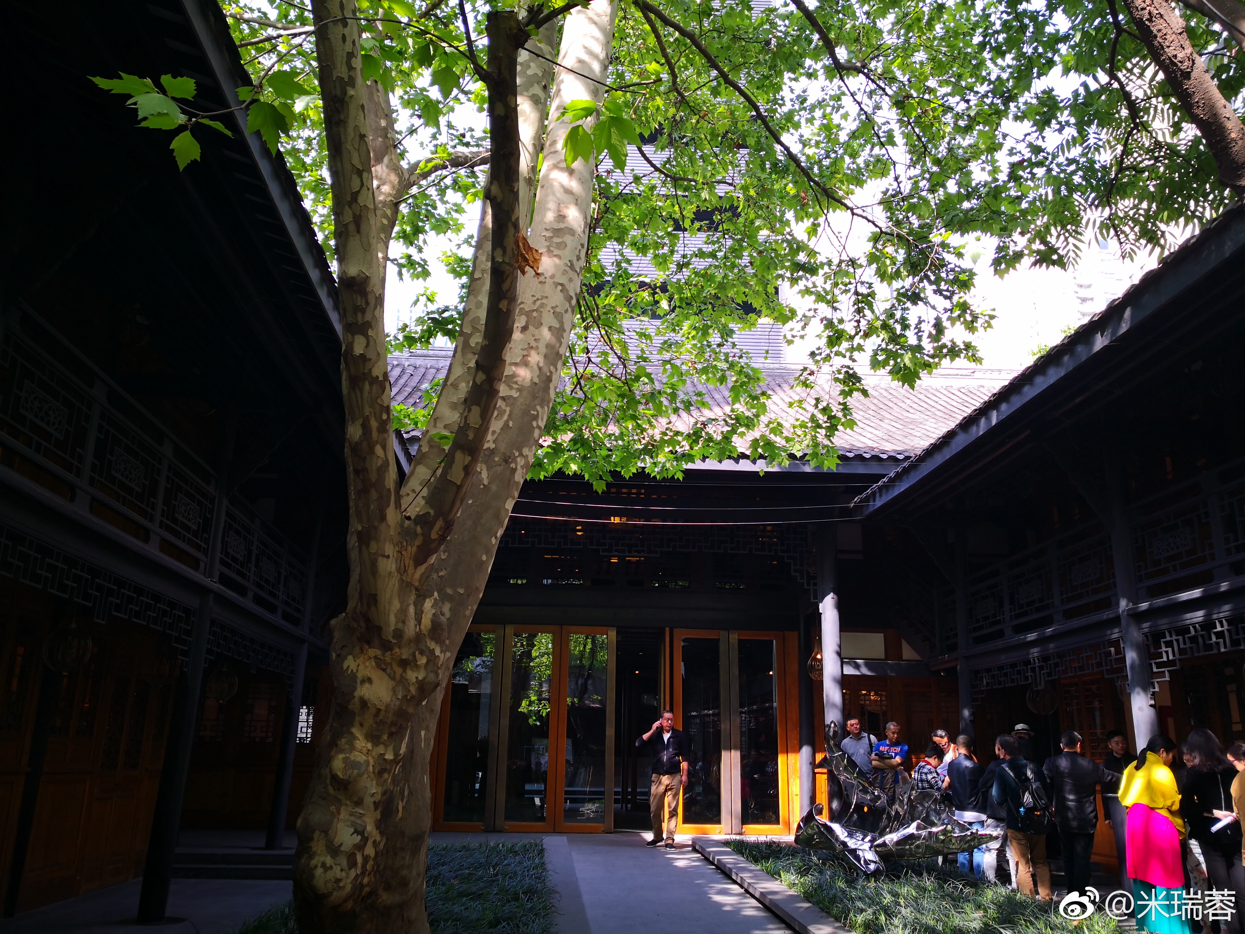 远远地看到钢筋水泥的森林包围之中有一栋老式建筑,灰砖青瓦,一棵高大的梧桐树抽出的嫩绿树叶迫不及待地从院子里冒出头来招摇着过往的游客,门楼顶着高大的牌坊,不言自表告诉大家此楼出身显赫。我想这必是我要找的“博舍”,没有问便走了进去,好雅致的一个院落,不大,左右厢房,正堂居中,楼梯隐于左右,踏着木制楼梯上到二层,懊恼起脚下的高跟鞋,怎么轻放脚步也是嘀嗒作响,这嘀嗒声恍若把我带到三十多年前那个小院……