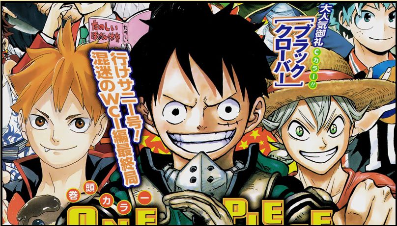 这周JUMP的封面是各个JUMP主角互相cos:路飞换成我的英雄学院里的绿谷出川(人偶)的造型,而cross成路飞的是来自黑色五叶草的亚撕塔。这三个人可以说是现在Jump的“三巨头”了。
