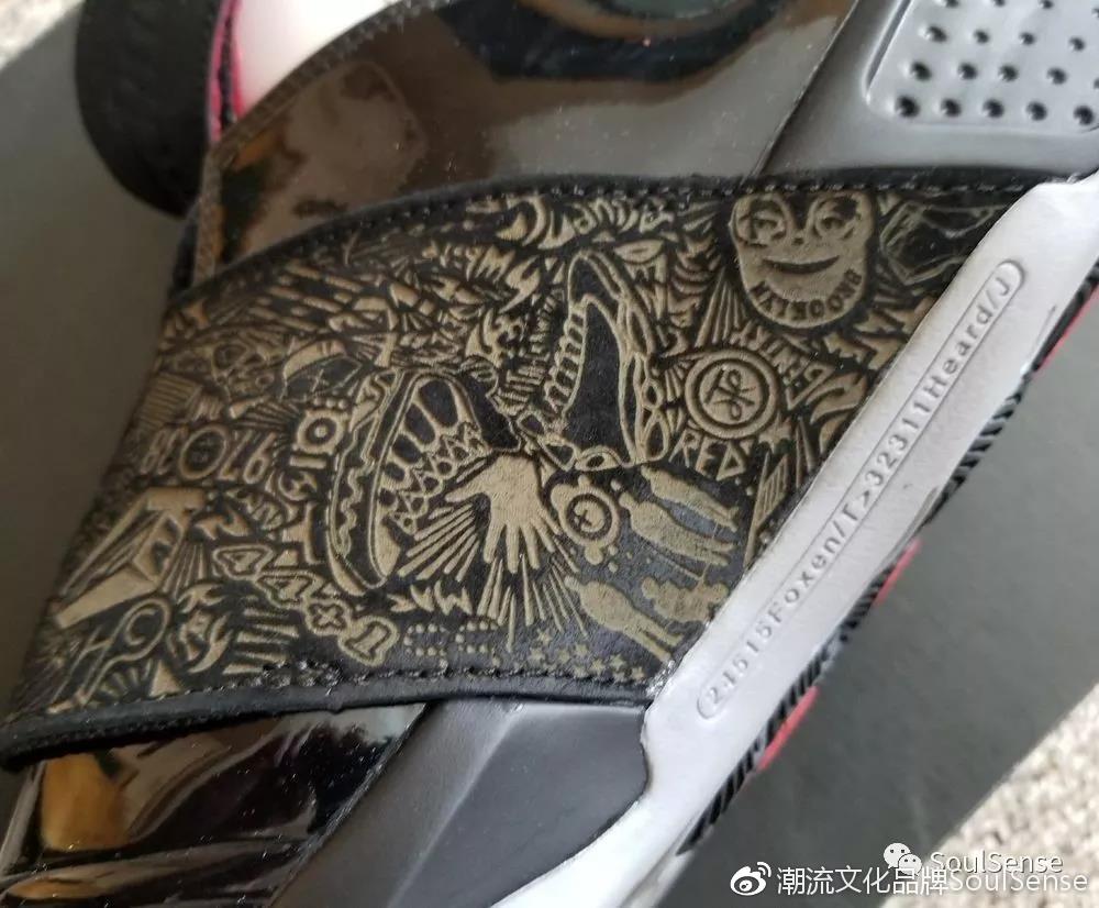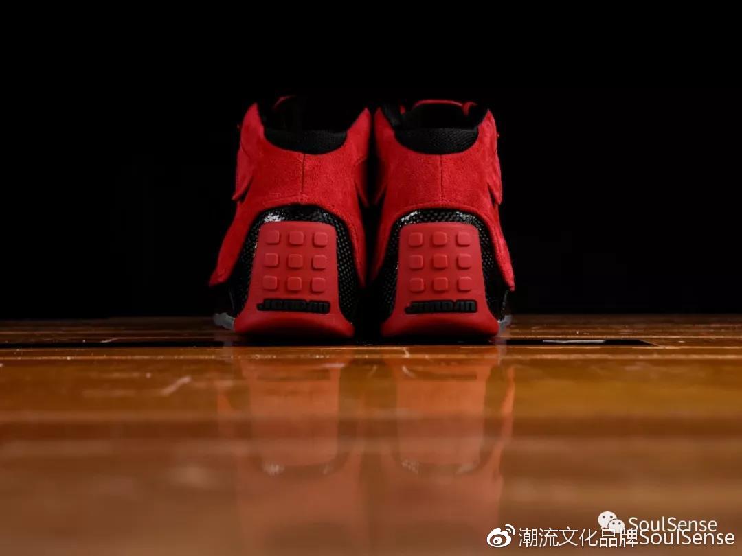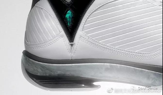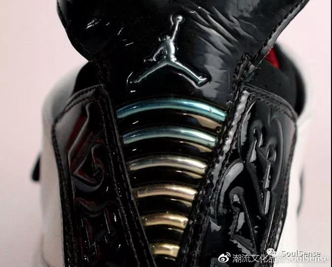 解密:汽车是 Air Jordan XVIII 上很重要的设计灵感之一,后跟部分则是来自于那些专业的赛车鞋。很多赛车鞋都有这种外翻设计来让车手更容易控制踏板,而两只鞋后跟处的 9 个点加在一起正好代表了这双鞋是第18代 Air Jordan 球鞋。