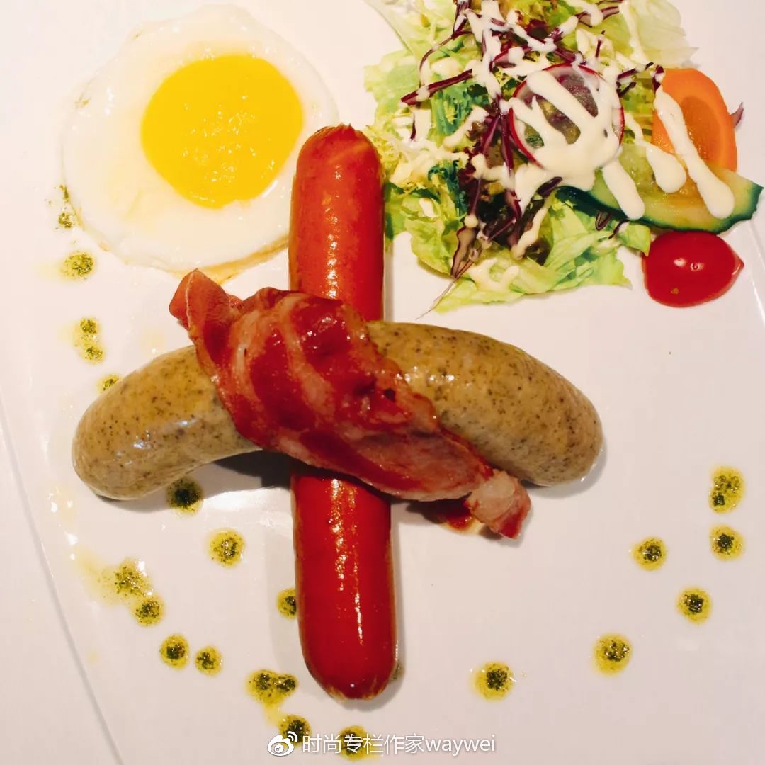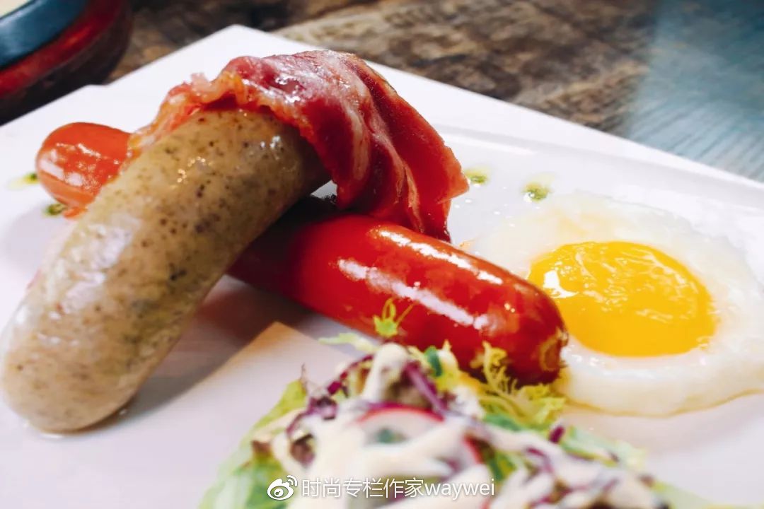 咸香的芝士肠搭配咸鲜的纽伦堡肠,鲜与香都有了!芝士肠的爽脆和纽伦堡肠特有的番茄汁酸和胡椒的麻,加上薄薄的培根和鲜嫩的太阳蛋,可以说非常满足了!