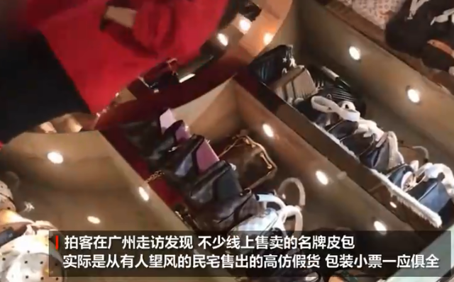 根据微博上某拍客在广州走访所拍摄的一只视频中得知,不少线上售卖的名牌皮包,实际是从有人望风的民宅售出的高仿假货。