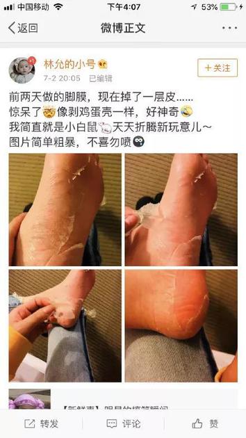 林允微博撕脚皮
