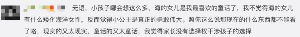 这种举动,激怒了不少网友,他们觉得当妈的用自己的功利心解读童话,甚至还要剥夺孩子对一段悲伤、浪漫的爱情故事的阅读机会,是“矫枉过正”了,也不大像话。