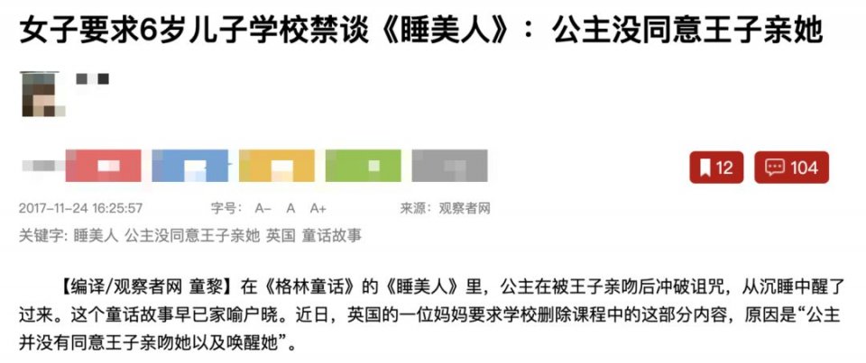英国一位妈妈曾因为《睡美人》中含有儿童不宜的“性讯息”,向学校提出申请,从课程中剔除《睡美人》。
