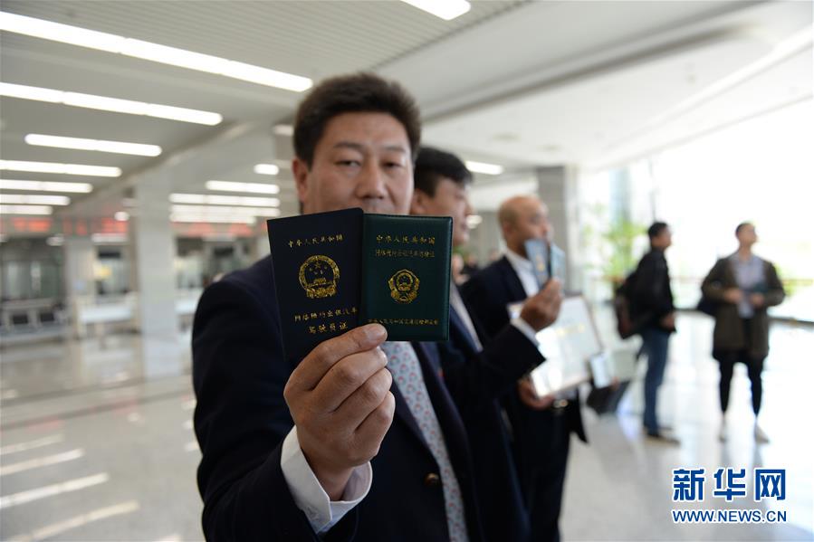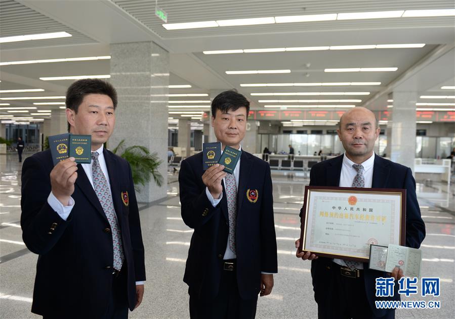 4月27日,首汽约车司机在北京市政务服务中心向记者展示他领取的《网络预约出租汽车驾驶员证》和《网络预约出租汽车运输证》。当日,北京市交通运输主管部门向首汽约车旗下的车牌号为“京BZ1088”的网约车颁发了北京市首张《网络预约出租汽车运输证》。这是北京市继平台、驾驶员之后针对车辆颁发的又一网约车相关许可。首汽约车成北京首个《网络预约出租汽车经营许可证》《网络预约出租汽车驾驶员证》和《网络预约出租汽车运输证》三证齐全网约车平台。新华社记者 王化娟 摄