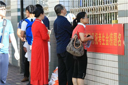虽然考生已经进入考场,但很多家长仍然选择现在门外等待,以这种方式陪伴孩子。