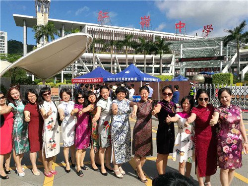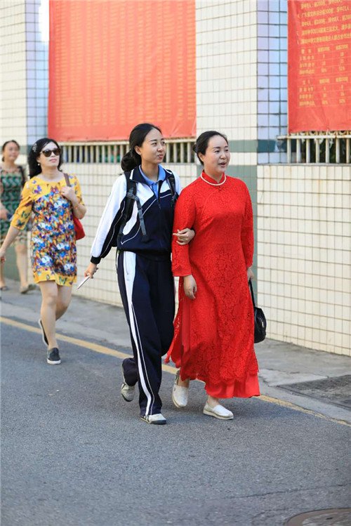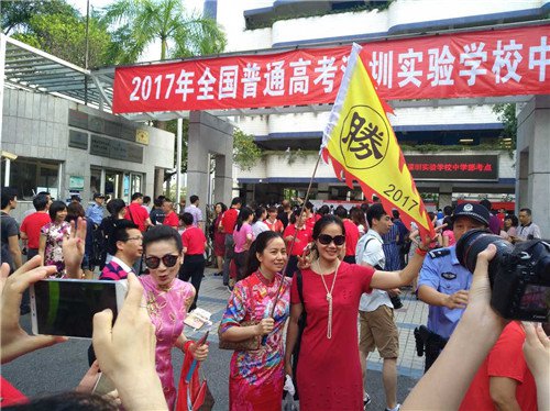 不少母亲都穿着旗袍来送考,寓意孩子 " 旗开得胜 "!