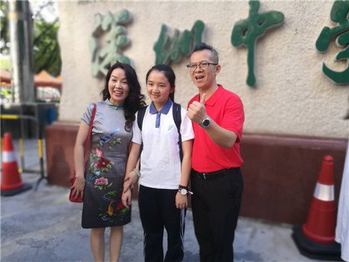红岭高中门口,一对父母与女儿挥手告别,不忘嘱咐一句 " 放轻松,晚上来接你 "!考生母亲说,自己现在准备去上班,晚上来接孩子回家。