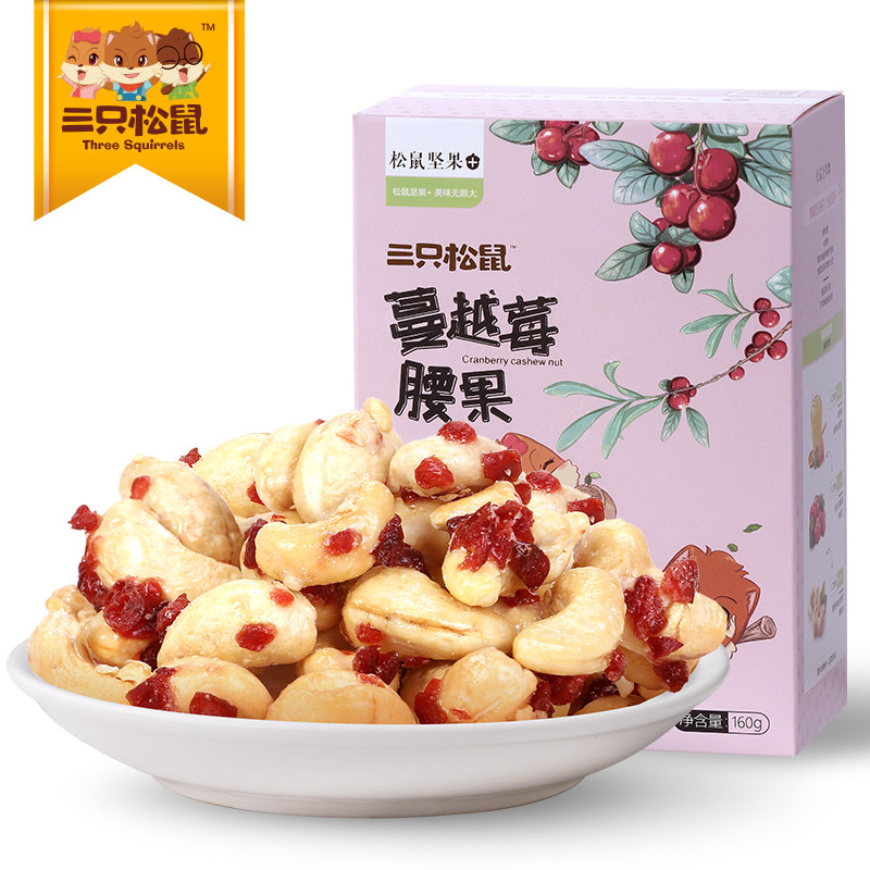 【三只松鼠_蔓越莓腰果160g】零食坚果蔓越莓干腰果混合果仁 ¥33.90