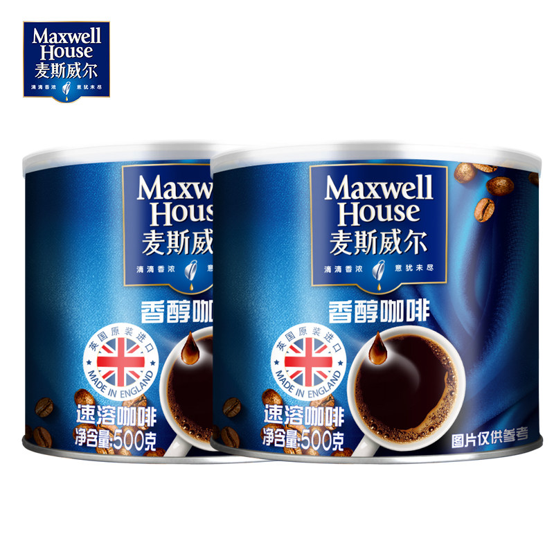 【10.20预售】麦斯威尔黑咖啡纯咖啡醇品速溶咖啡粉罐装500g*2桶 ¥226.00
