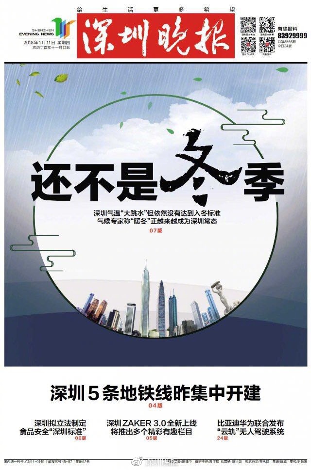 深圳人可能又要过一个 " 假冬天 ",近四成年份无冬,这次入冬或出现冷冬可能性不大。